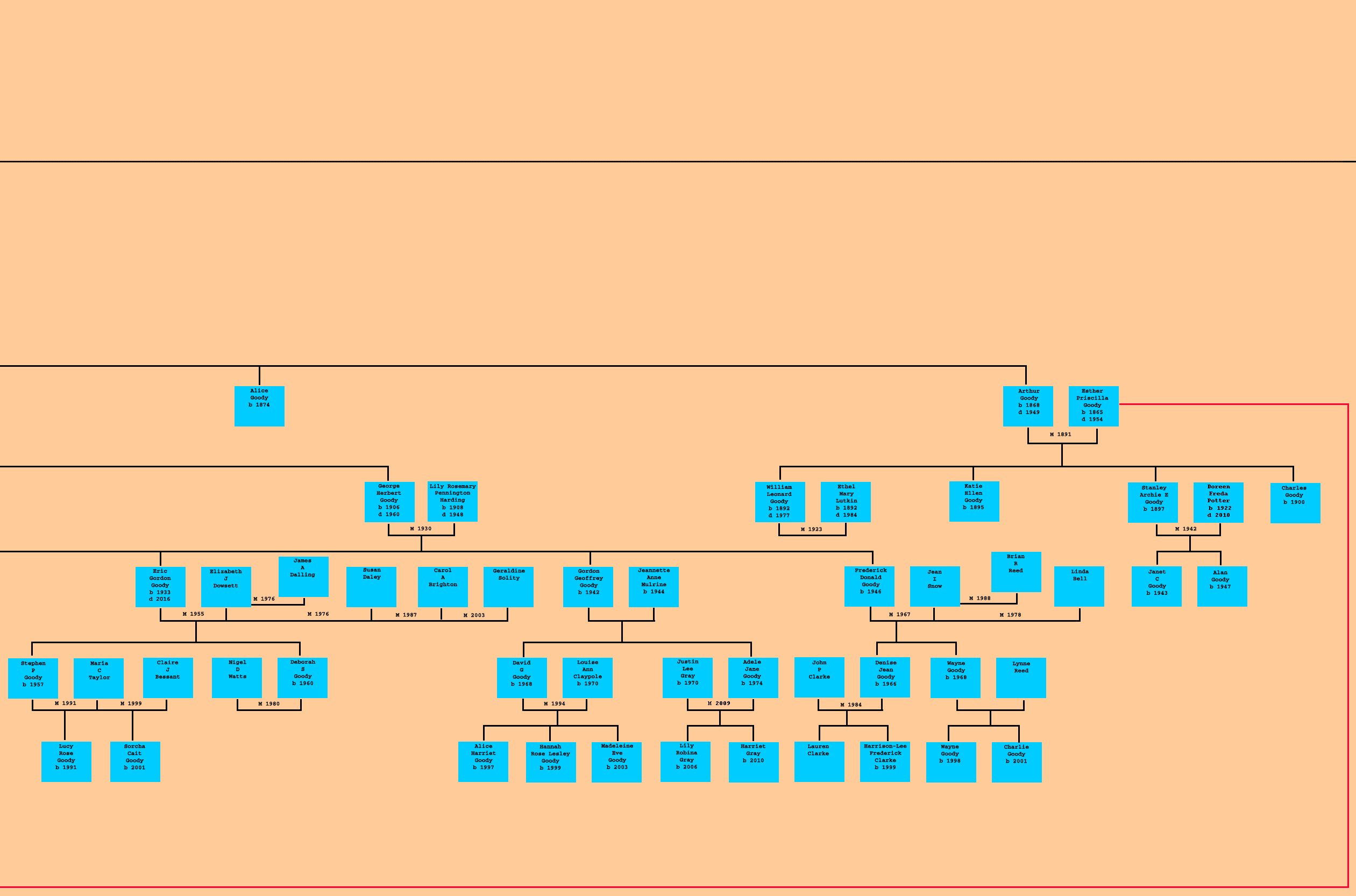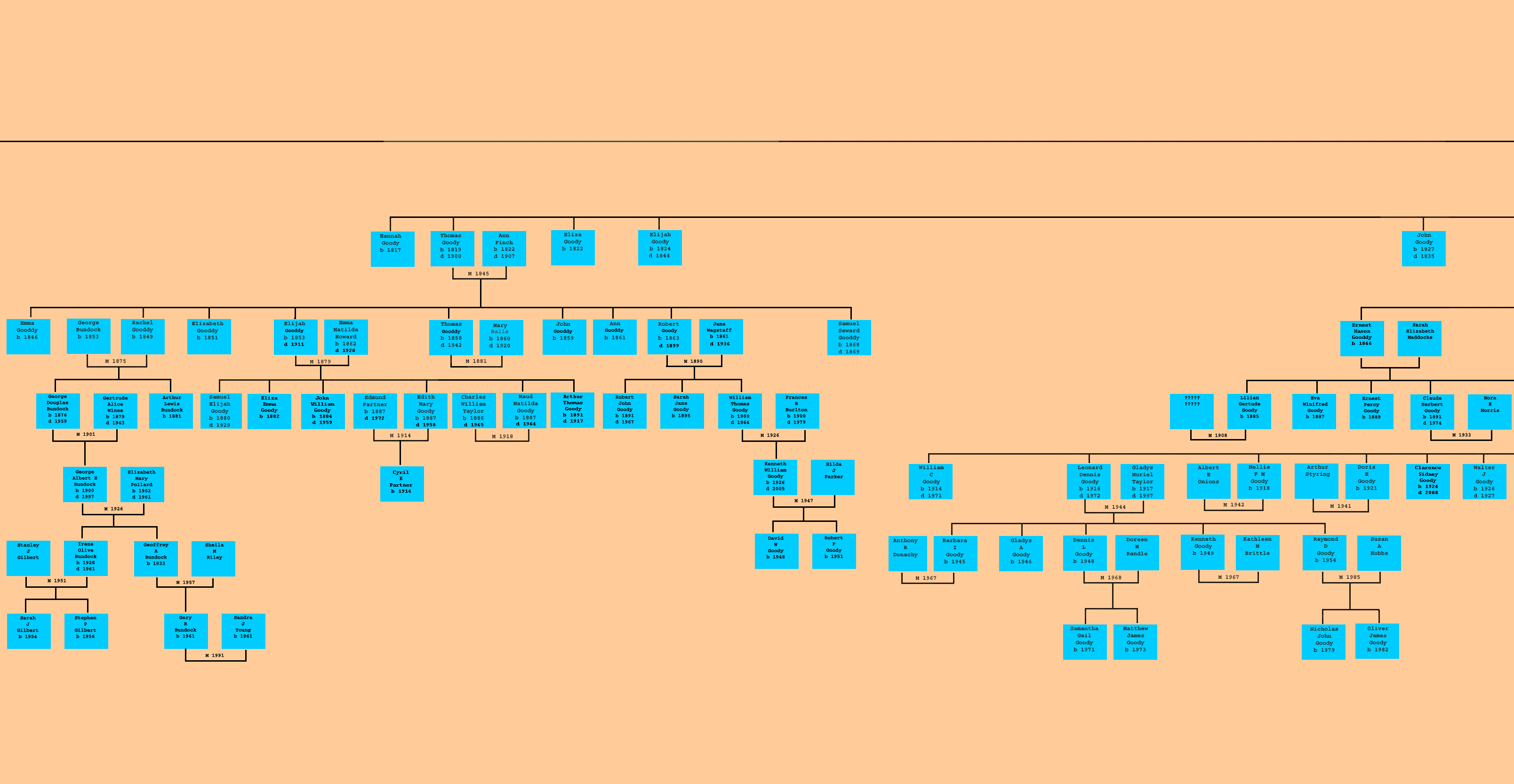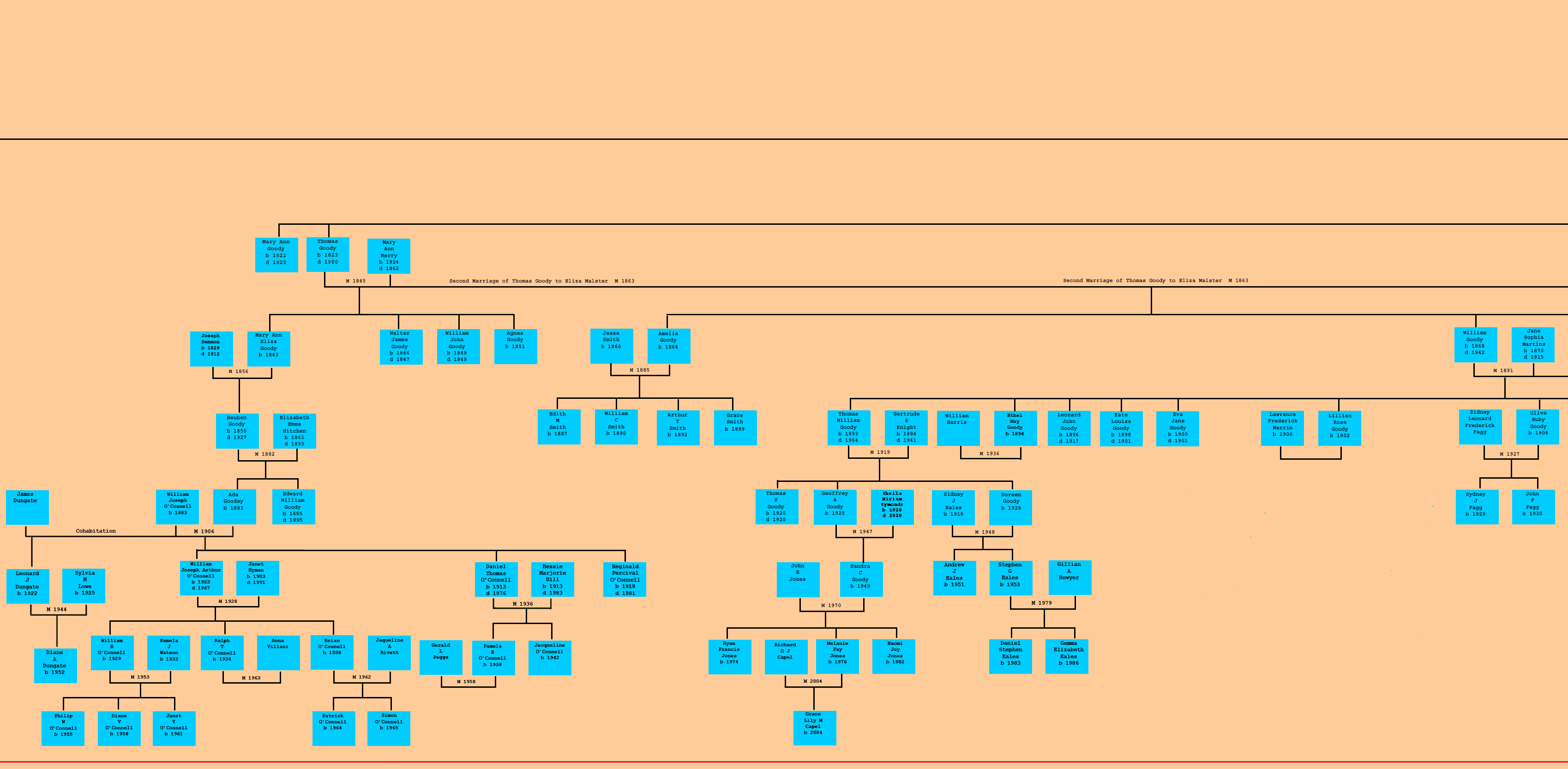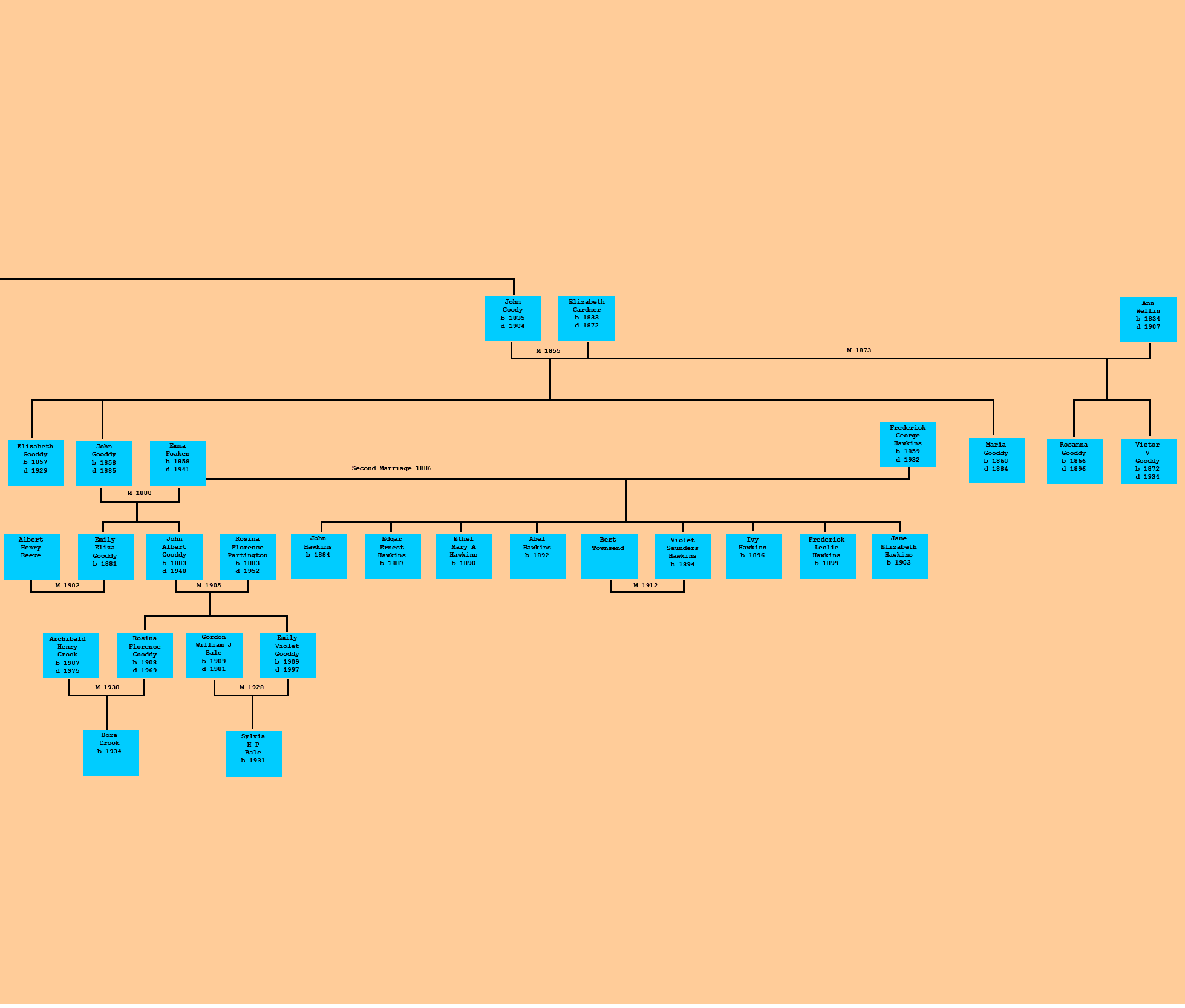 Two Goodey trees join because Arthur and Esther Priscilla Goodey married