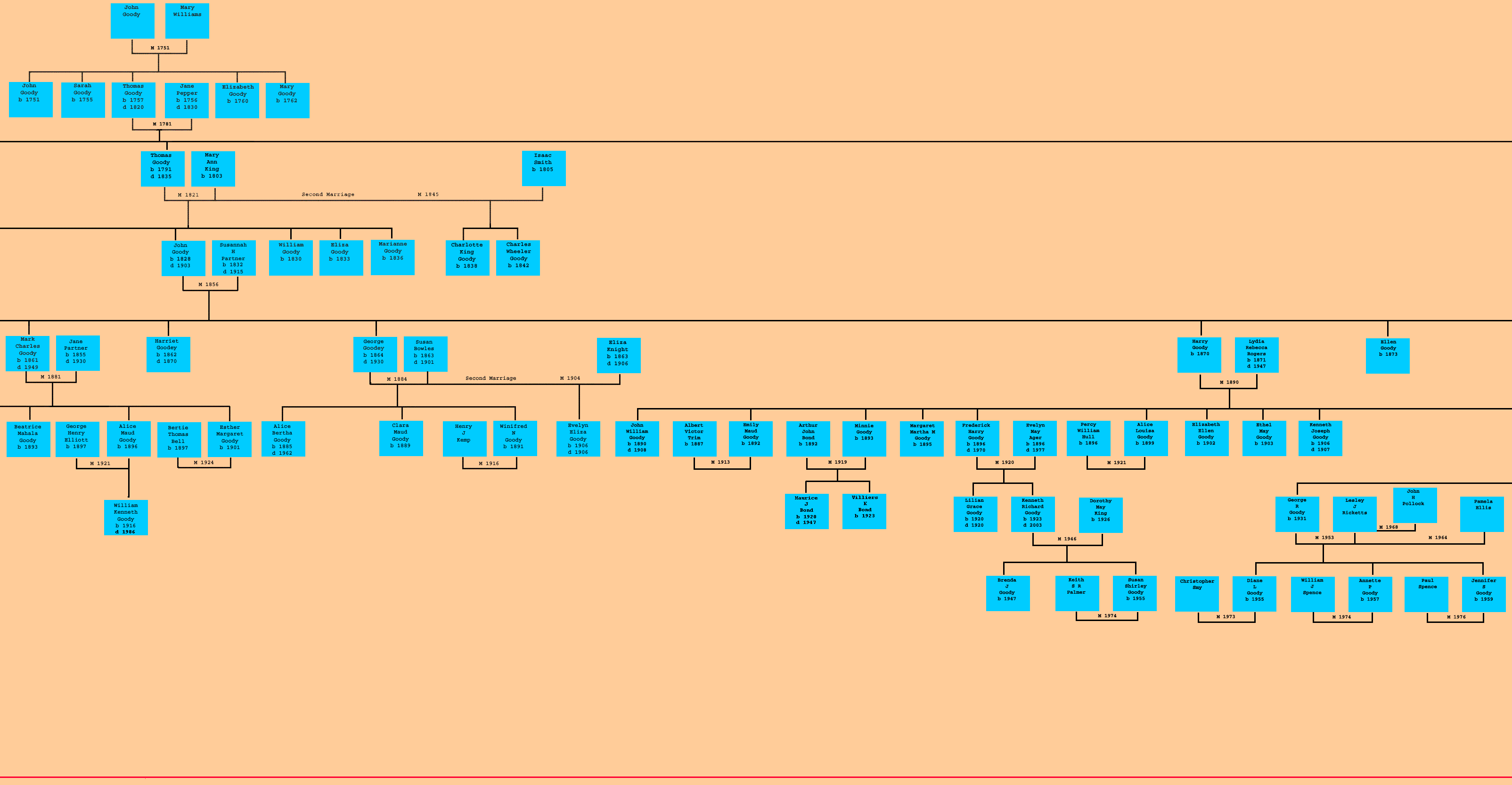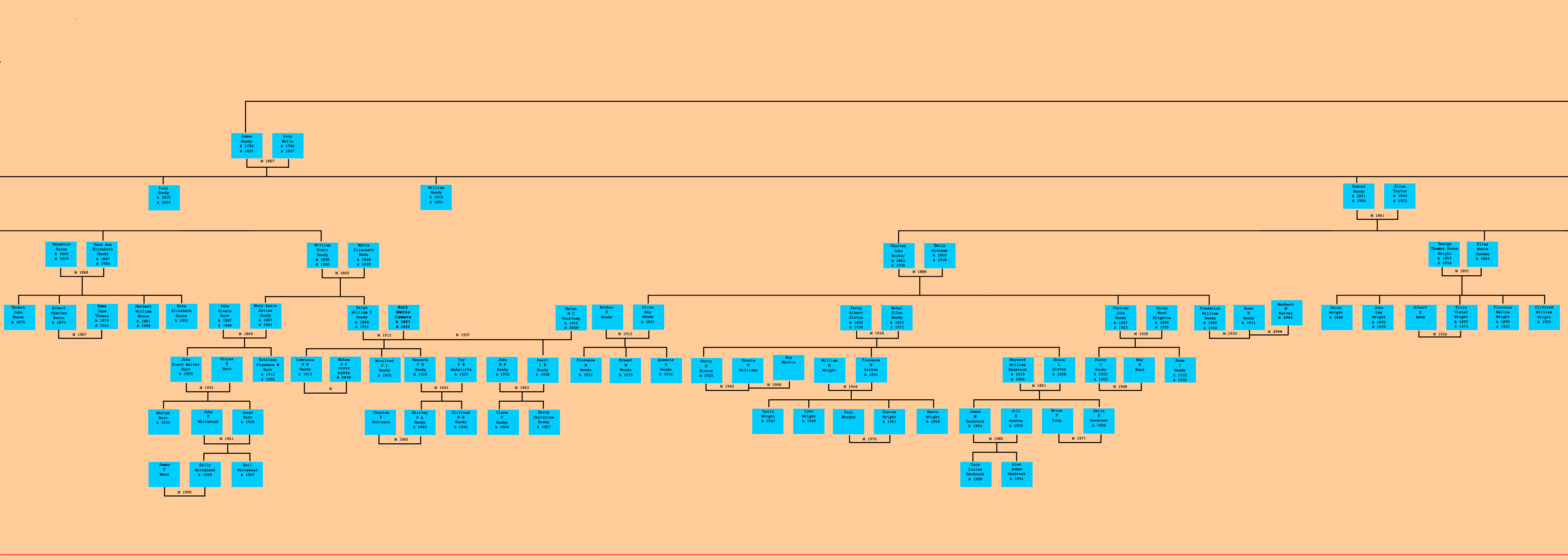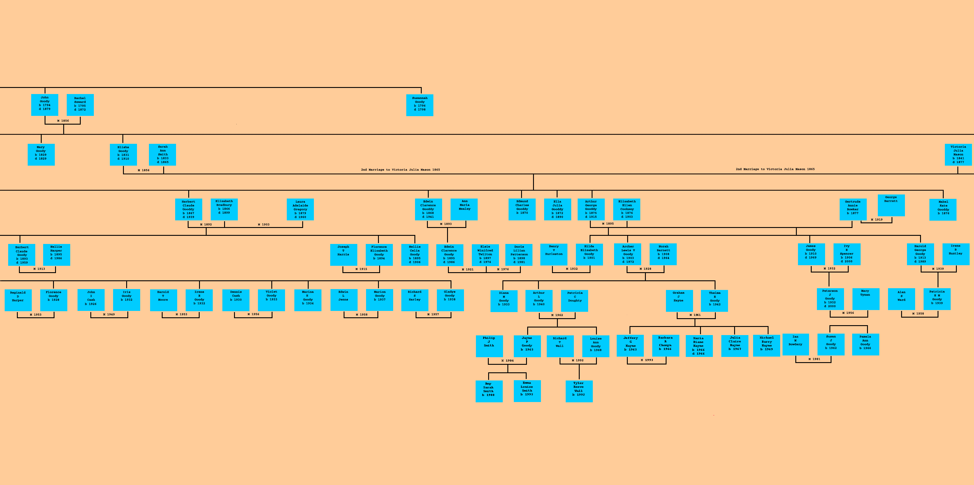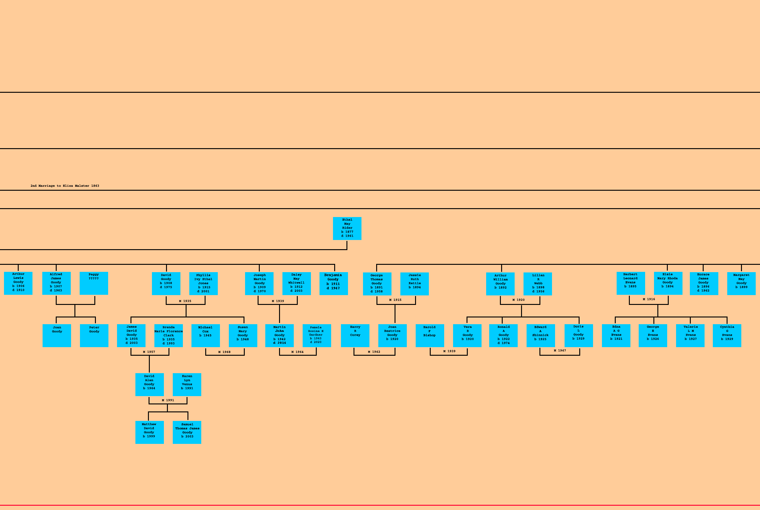 Two Goodey trees join because Arthur and Esther Priscilla Goodey married