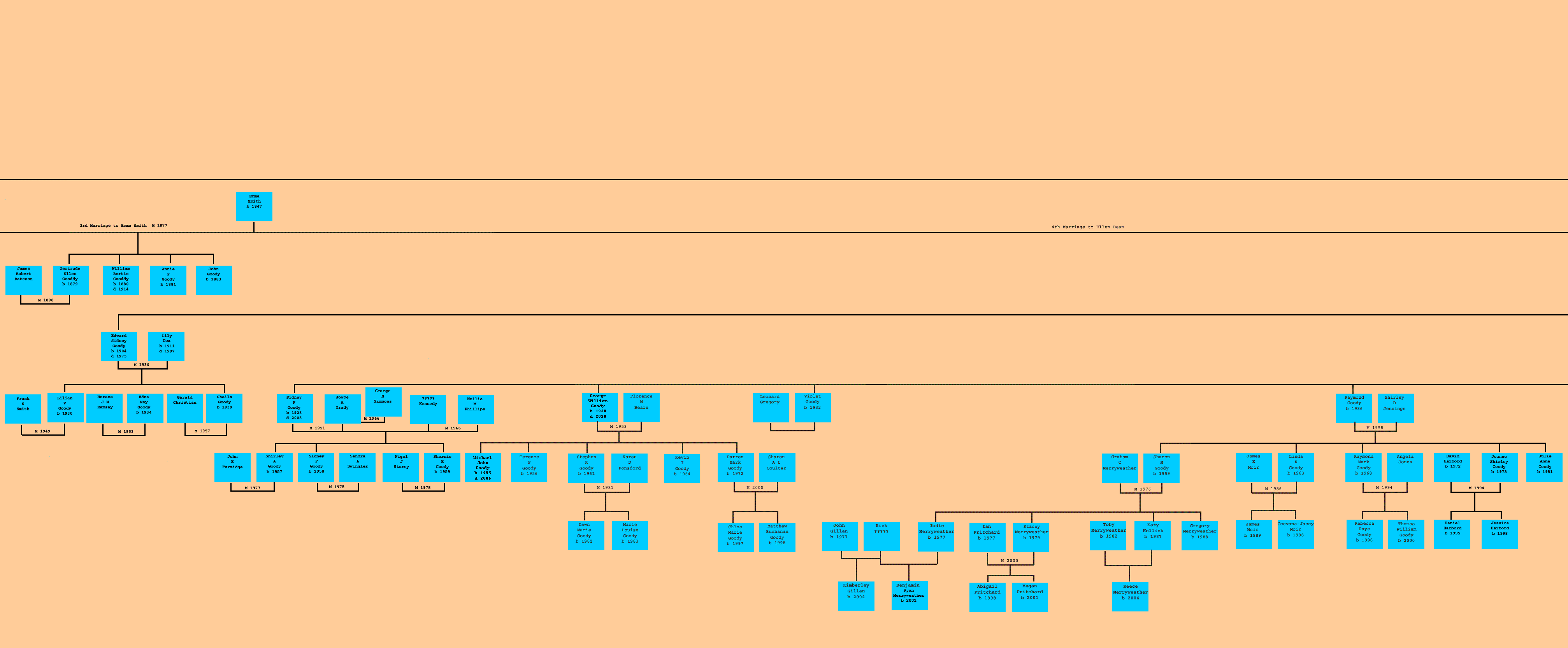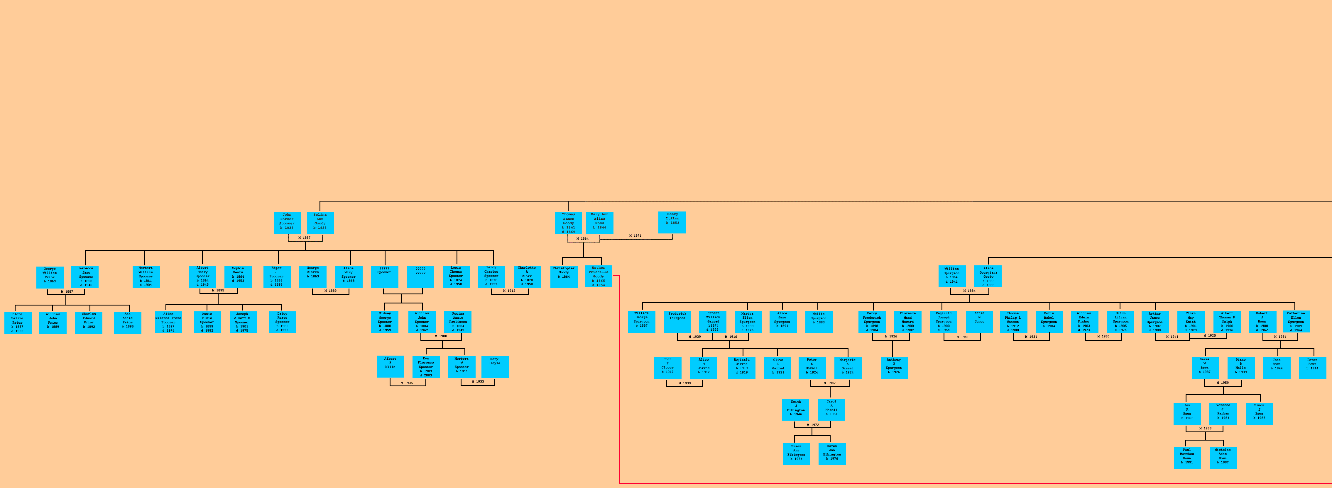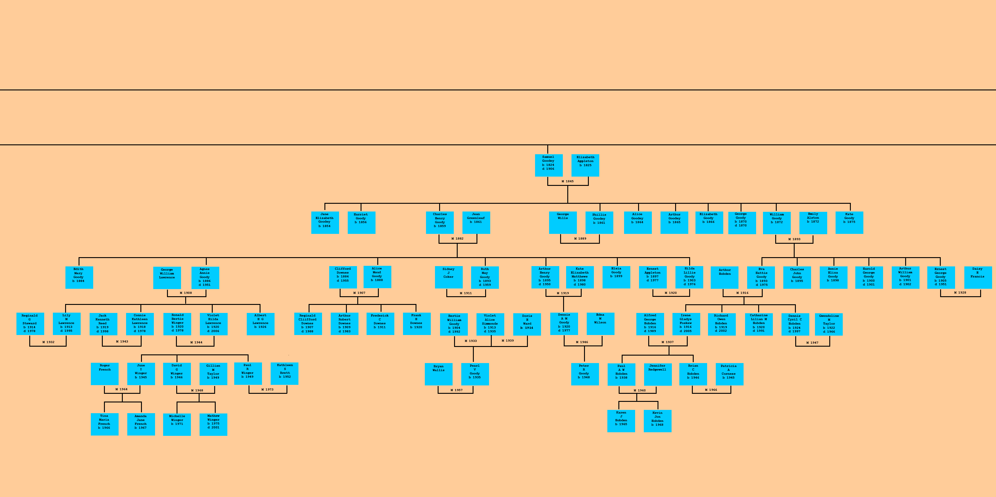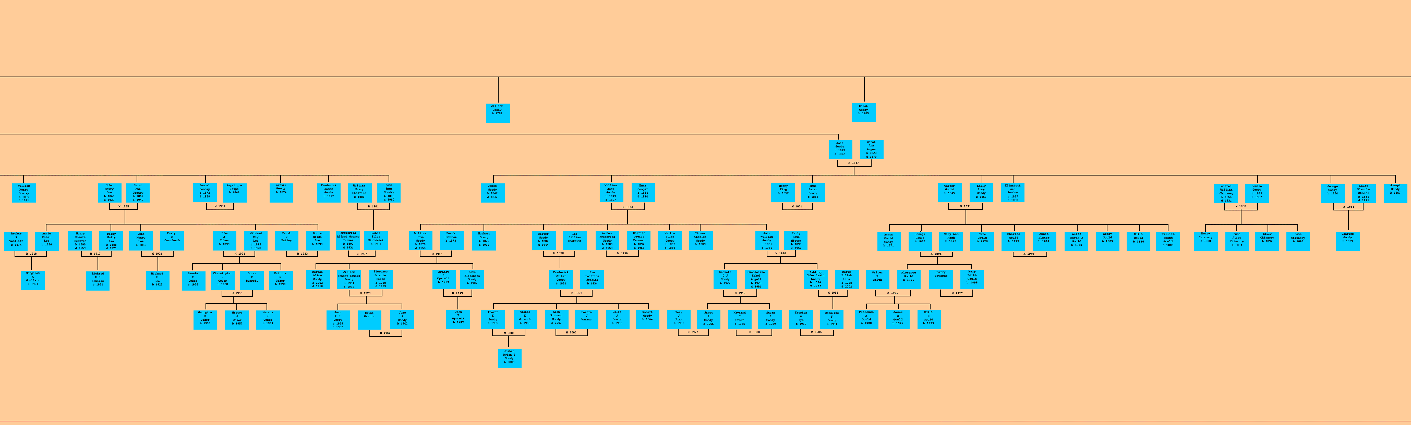 Two Goodey trees join because Arthur and Esther Priscilla Goodey married