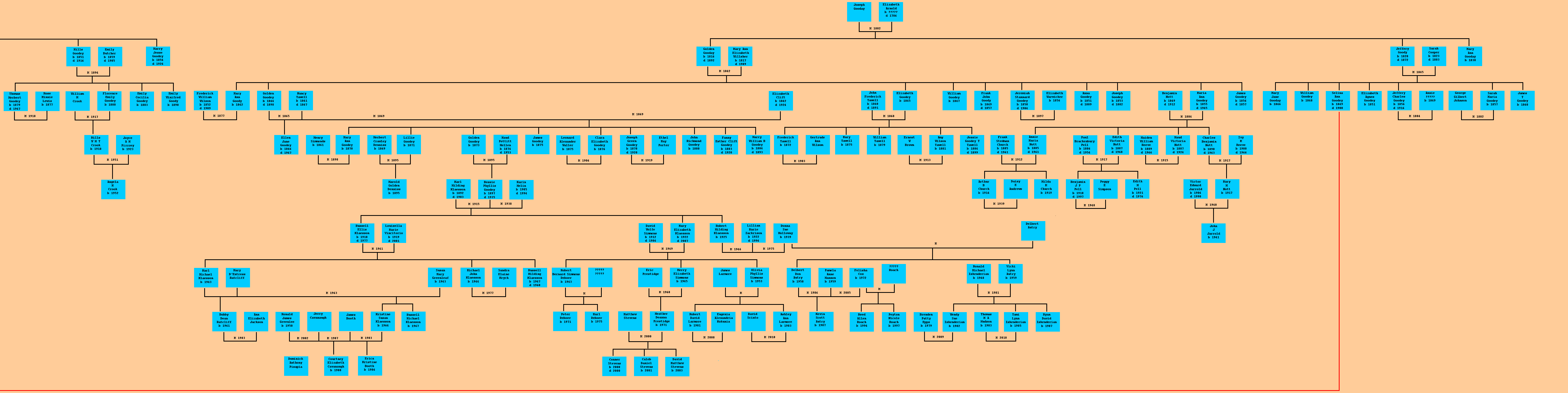Two Goodey trees join because Arthur and Esther Priscilla Goodey married
